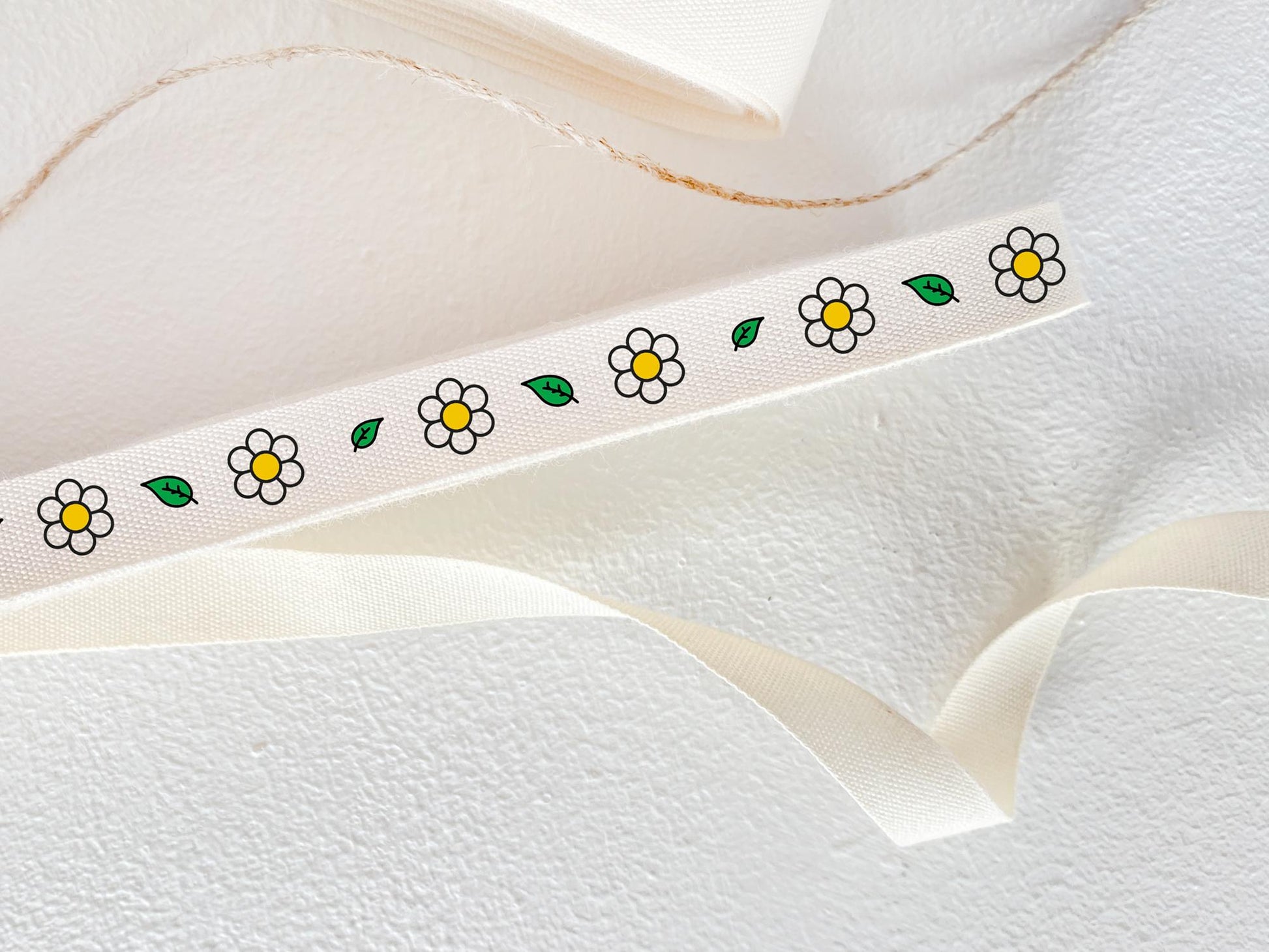 Springtime Charm: Daisy Printed Cotton Ribbon for Fresh & Floral Touch
