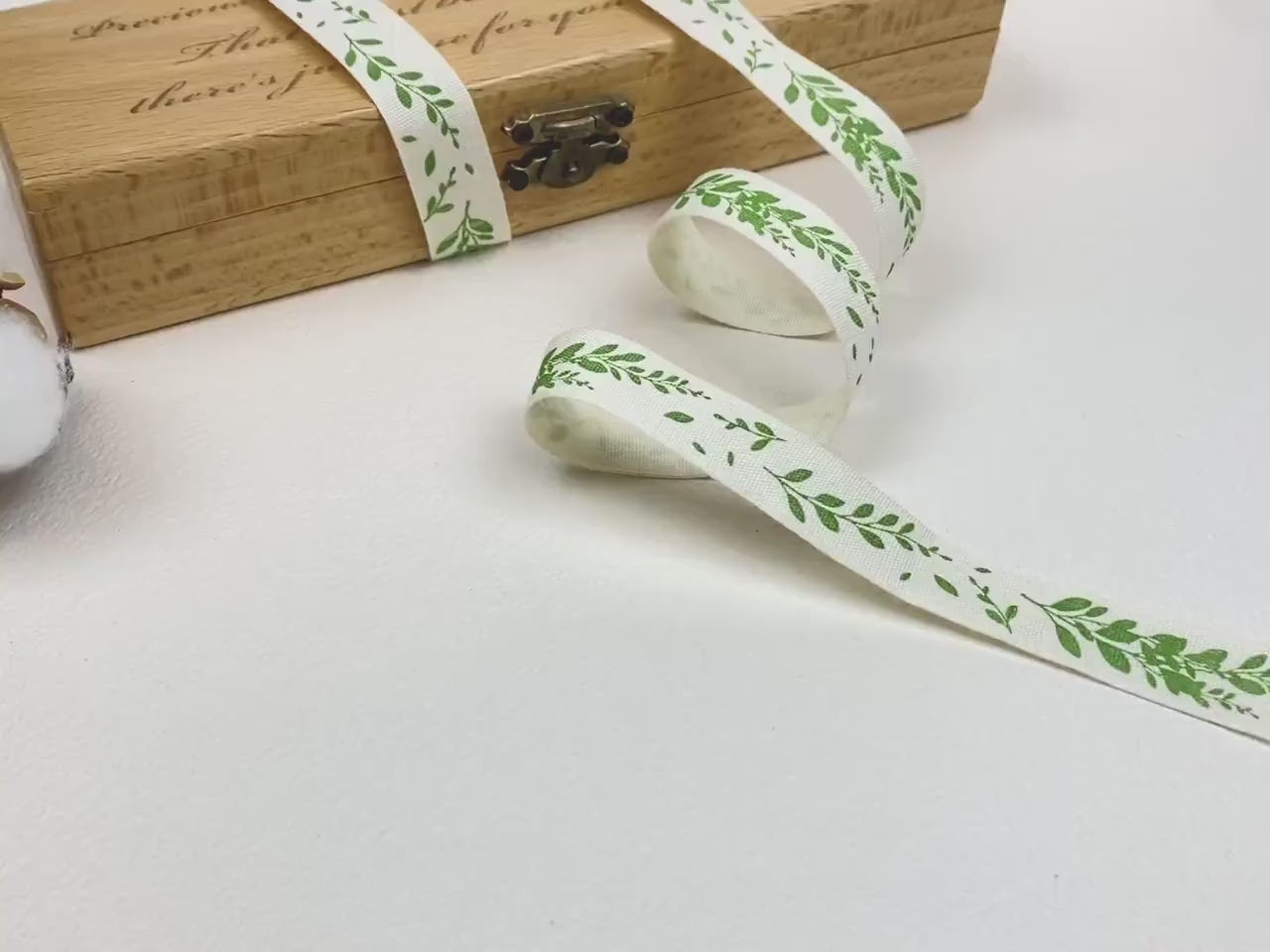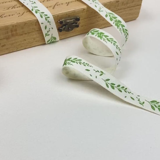 Add a touch of greenery to your packaging with this green leaves printed cotton ribbon. Designed for nature lovers and handmade brands, this foliage-inspired ribbon strip is woven from 100% natural cotton. It's the perfect way to give your gifts and products a refreshing, eco-conscious feel with soft botanical charm.