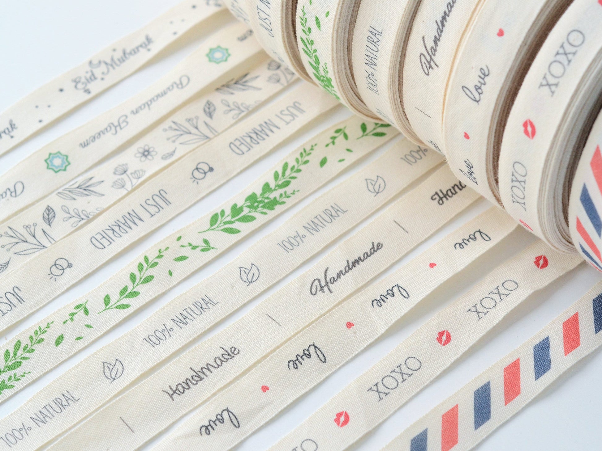 Give your creations the care they deserve with our "Handmade" printed ribbon. Made from 100% natural cotton, this elegant ribbon adds a warm, personal detail to your handmade items, gifts, and packages.