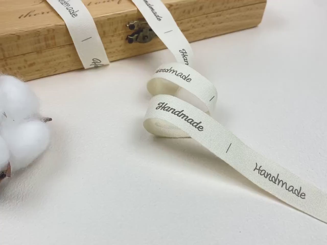 Handmade Touch: Natural Cotton Ribbon with 'Handmade' Print for Thoughtful Packaging