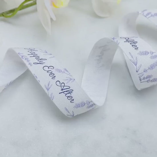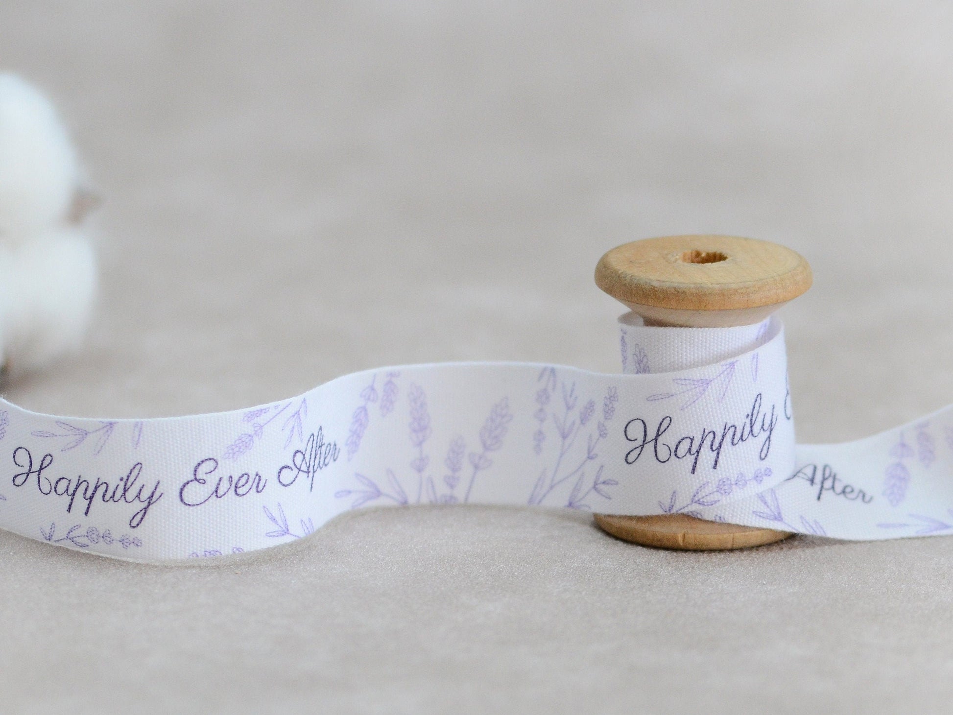 Wedding Bliss: "Happily Ever After" Printed Cotton Ribbon in Soft Lavender for Romantic Touches