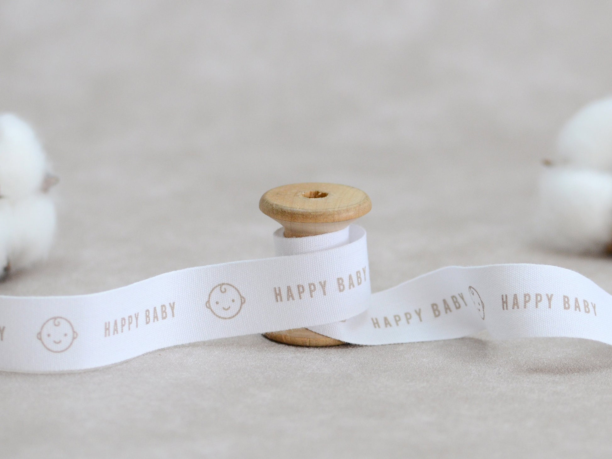Joyful Beginnings: "Happy Baby" Printed Cotton Ribbon for Natural Baby Gifts