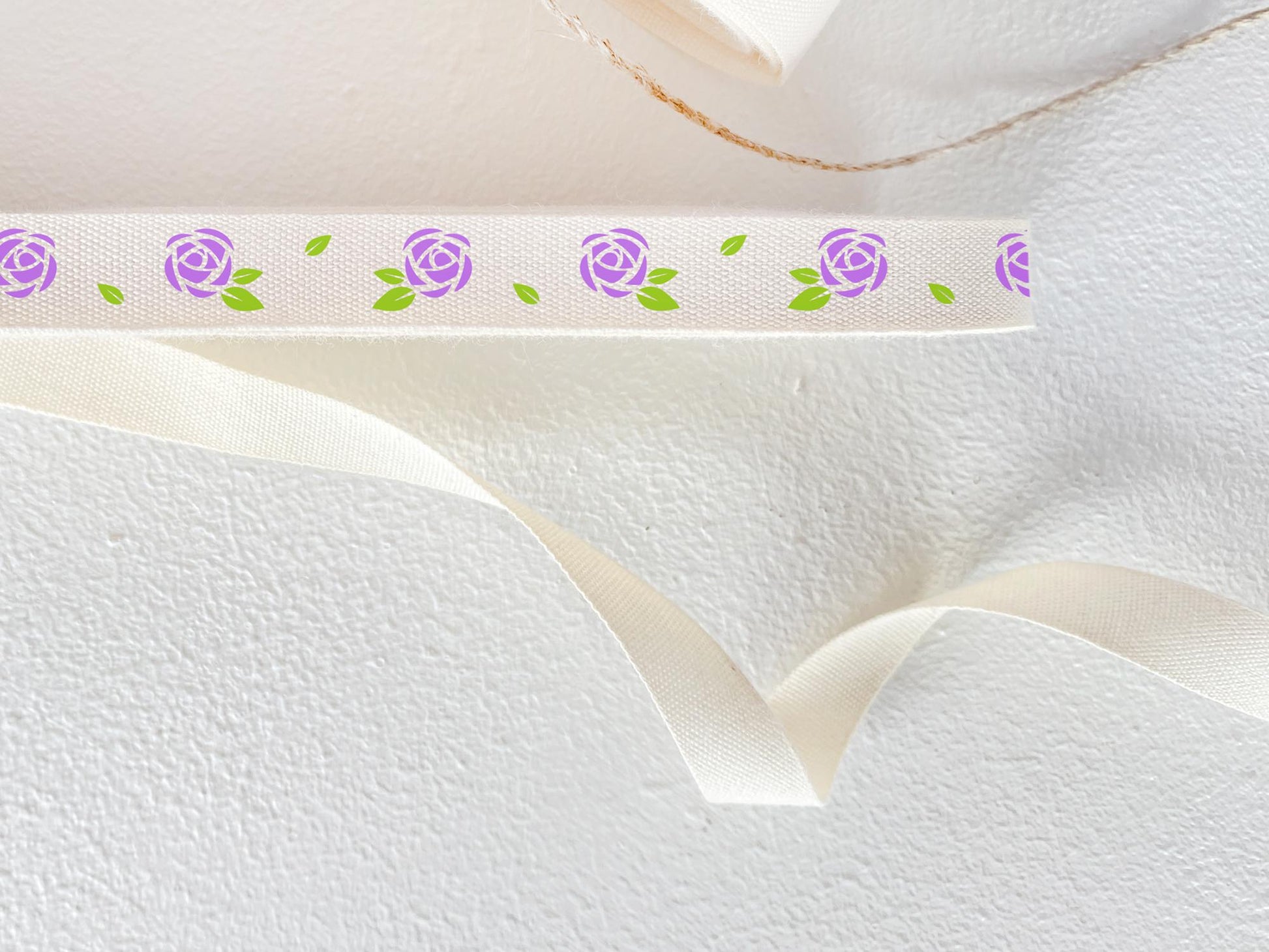 Capture the beauty of spring with this lilac rose-printed cotton ribbon. Crafted from 100% natural cotton, this twill tape features a soft floral pattern, making it ideal for romantic gift wrapping, botanical-themed crafts, and special occasions like Mother's Day, Women's Day, and spring weddings.