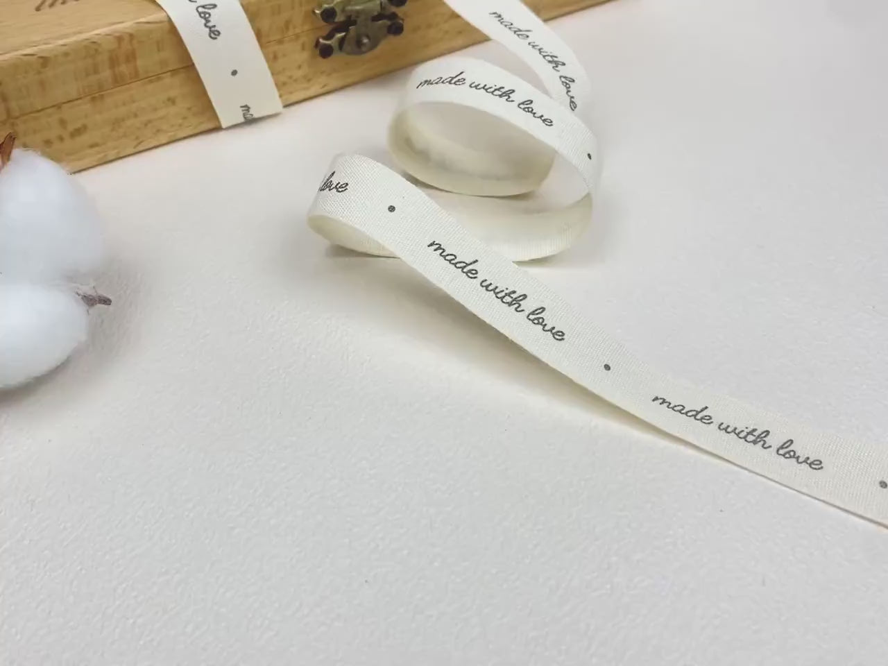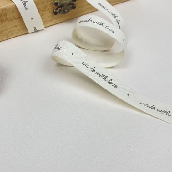 Enhance your handmade items and thoughtful gifts with our charming "made with love" cotton ribbon. Crafted from 100% natural cotton, this lovely ribbon beautifully communicates the warmth, care, and personal touch behind your handcrafted projects.