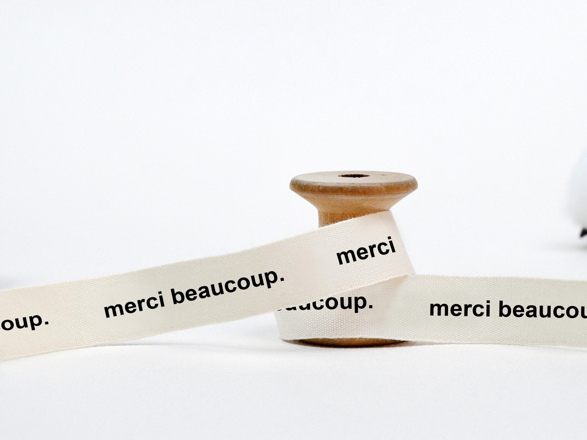 Heartfelt Thanks: Chic "Merci Beaucoup" Printed Cotton Ribbon for Genuine French Gratitude