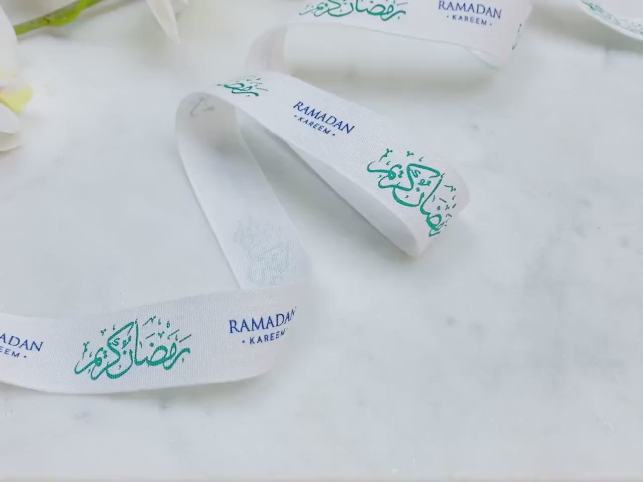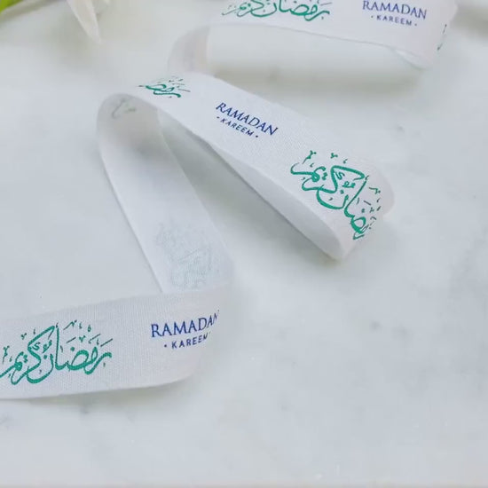 Celebrate the holy month with grace using our "Ramadan Kareem" printed ribbon. Crafted from 100% natural white cotton, this beautifully designed ribbon features elegant Arabic calligraphy and English text - perfect for adding a thoughtful touch to your festive packaging.