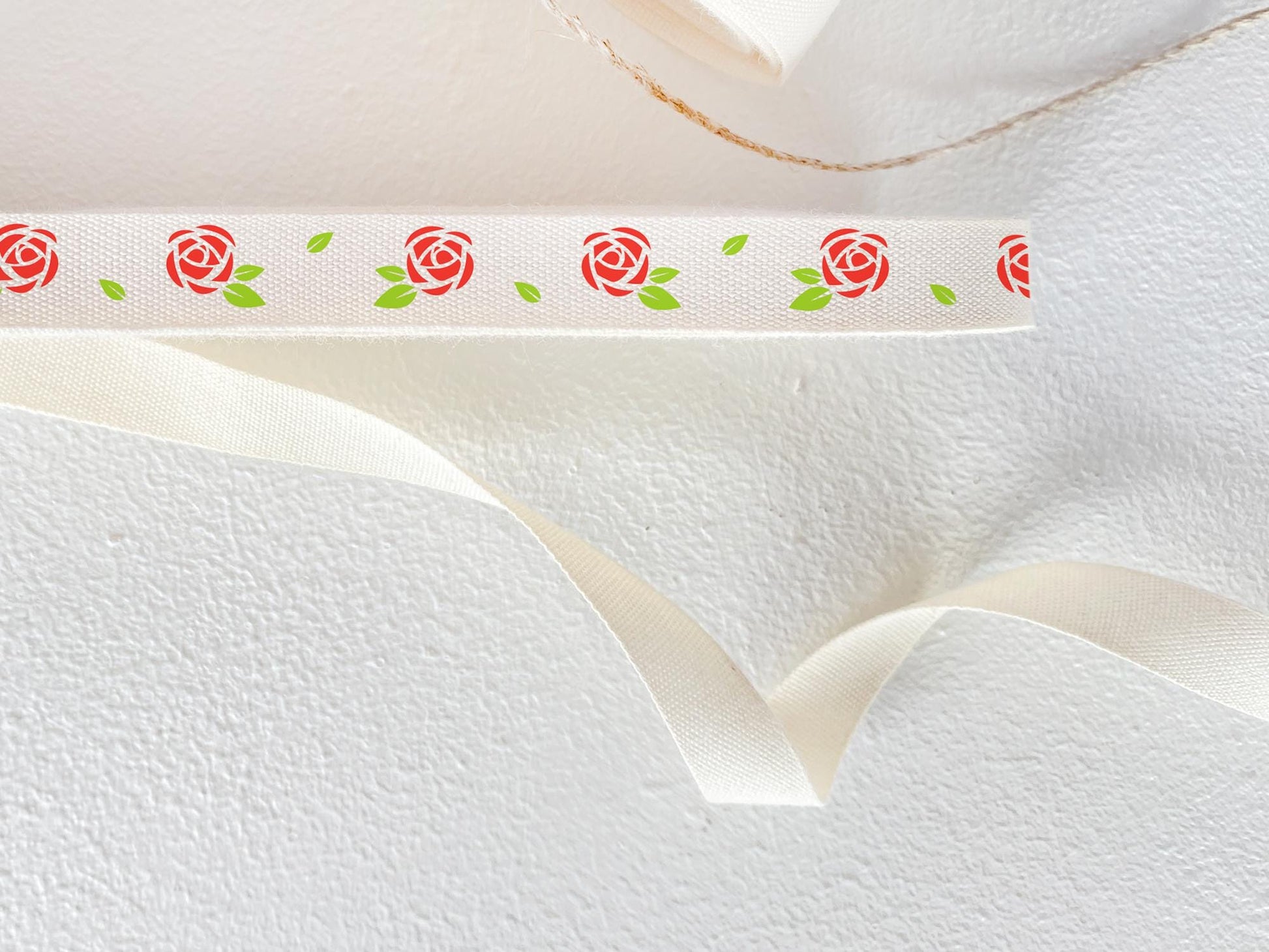 Add a delicate floral touch to your projects with this red rose-printed cotton ribbon. Crafted from 100% natural cotton, this twill tape brings a classic and romantic aesthetic, making it a perfect choice for special occasions, vintage-inspired crafts, and eco-conscious gift wrapping.